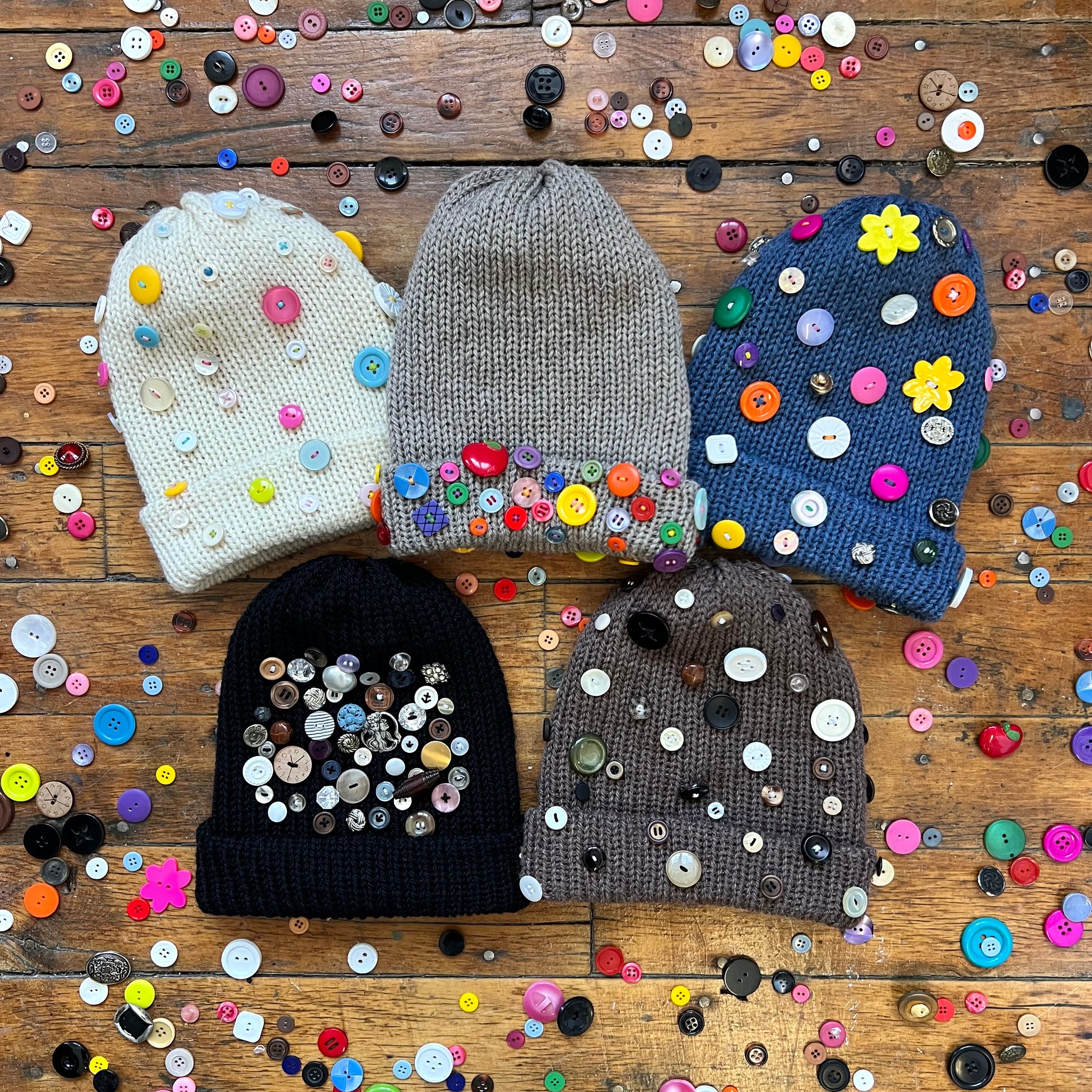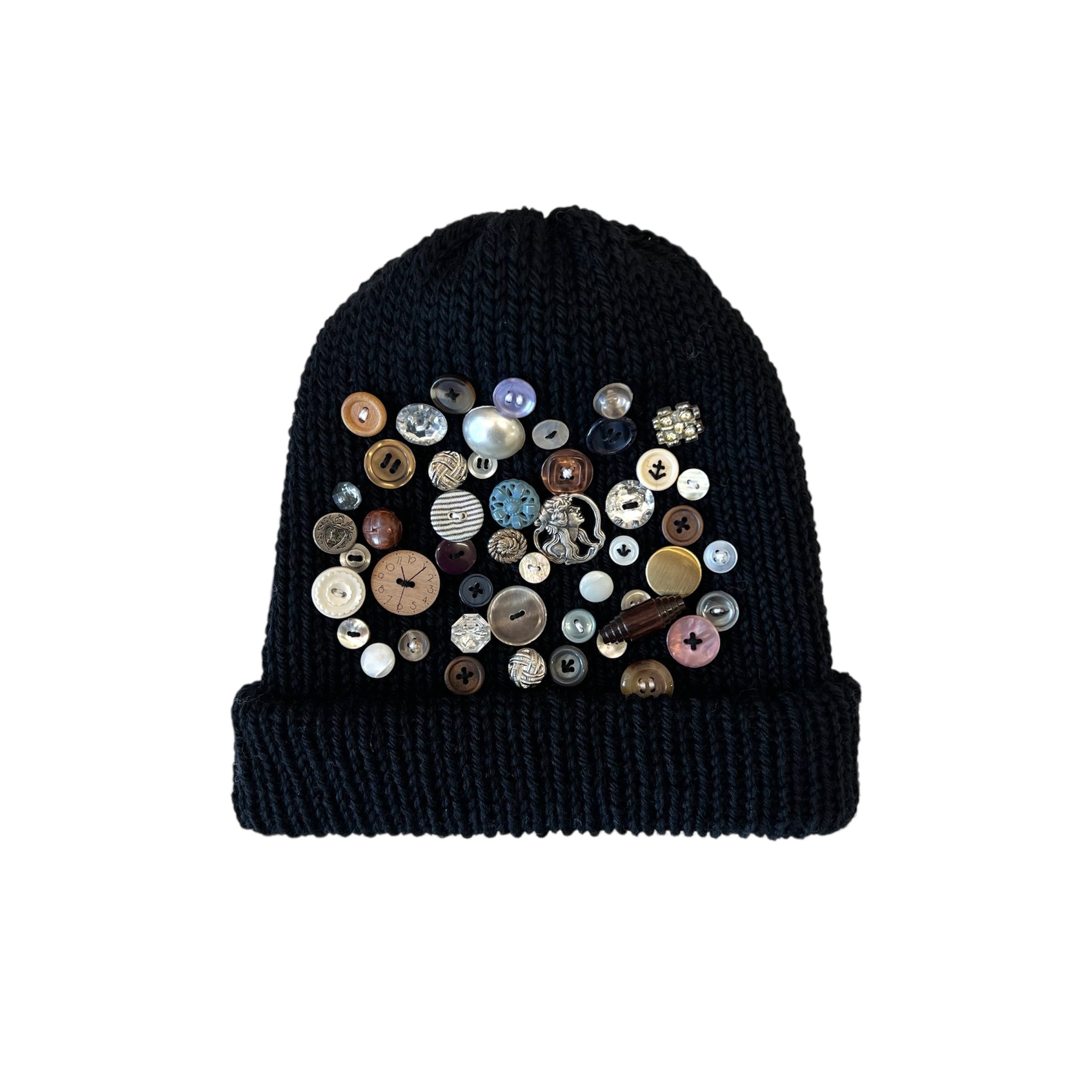 black wool button beanie